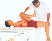 In a supine position, one leg pulled back to the chest, the other hanging over the edge of the treatment couch, the spinal column is locked by the bracing of the flexed leg against the body of the therapist. To stretch, the hip joint is straightened by light pressure on the thigh.
